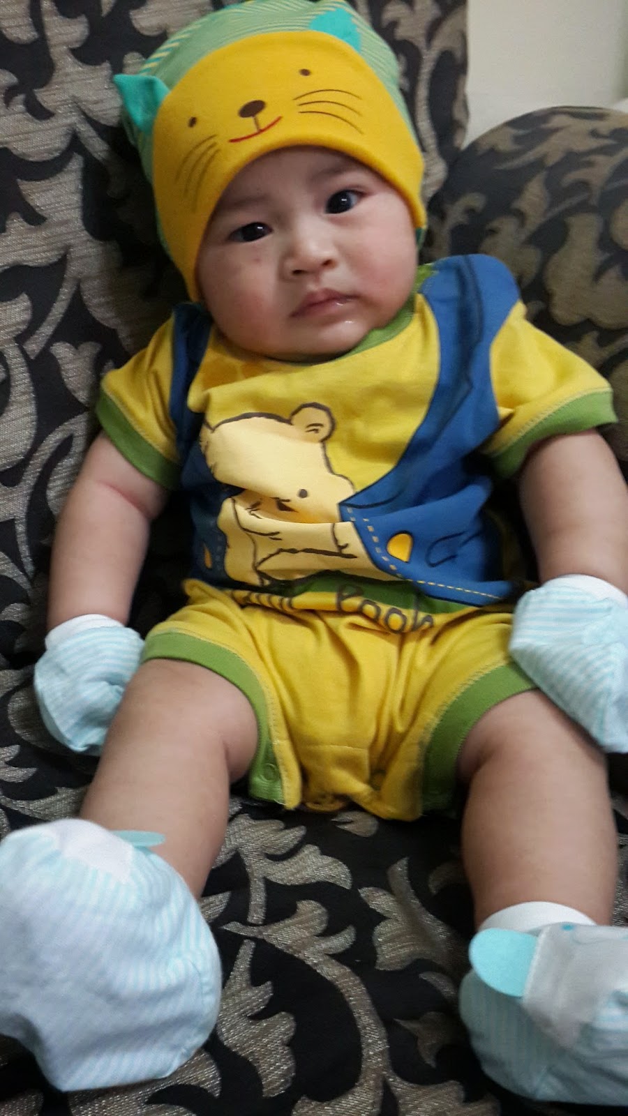 Umur baru 5 bulan lebih.. tp akak dah bg mkn bubur... kesian kt dia .. menangis2 bila tengok org makan.. bila bg bubur.. ya Allah mcm org kelaparan. . InsyaAllah ok kot. Mmglah org kata 6 bulan baru boleh bg mkn... mak akak dah bising biarkan Aryan tak makan.. tengok bila mkn.. semuanya ok je.. Akak bersyukur sangat.... walaupun akak dapat Aryan ni pd usia lewat... beza 11 tahun ngan kakaknya.